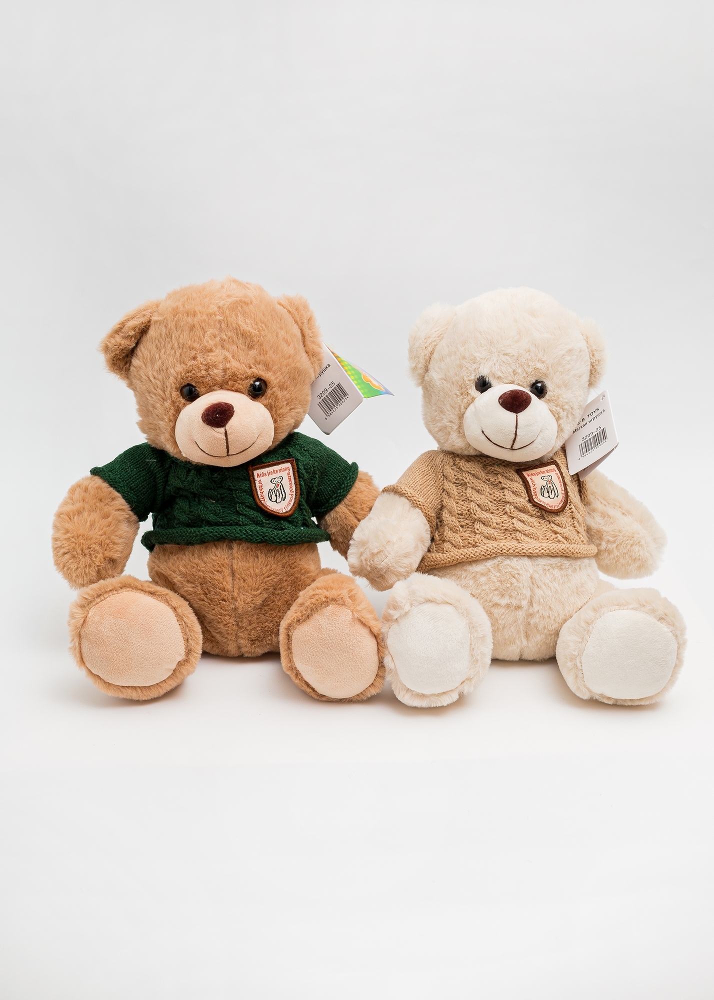 • Бежевый медвежонок в бежевом свитере – нежная классика в спокойной пастельной гамме, идеально подходящая для любого возраста.